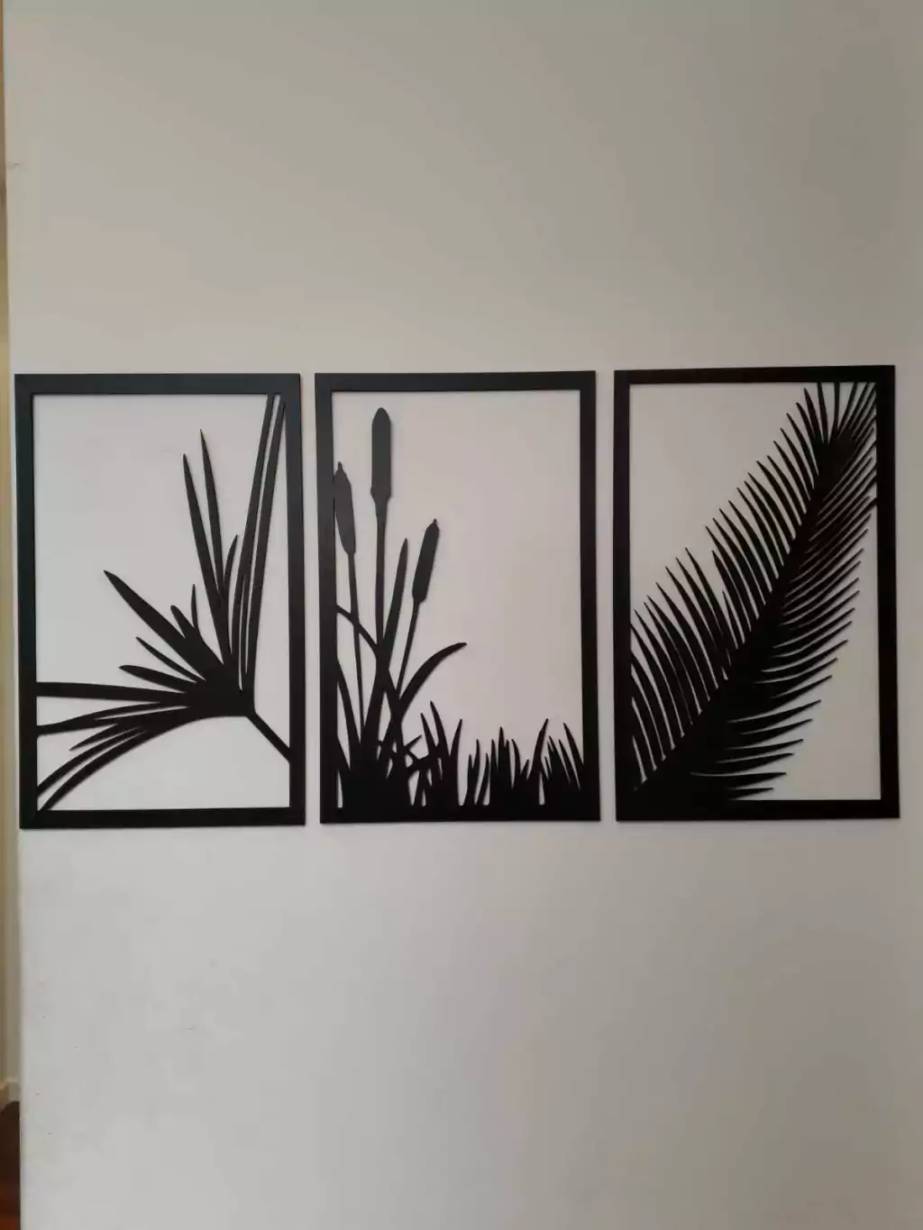 Transforma tu espacio con el Cuadro Tríptico Modelo Juncos, una obra de arte que combina diseño y elegancia. Con detalles calados que permiten que la pared se asome a través de ellos, este cuadro genera juegos de luces y sombras que añaden un toque atractivo a cualquier ambiente.