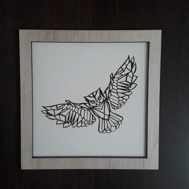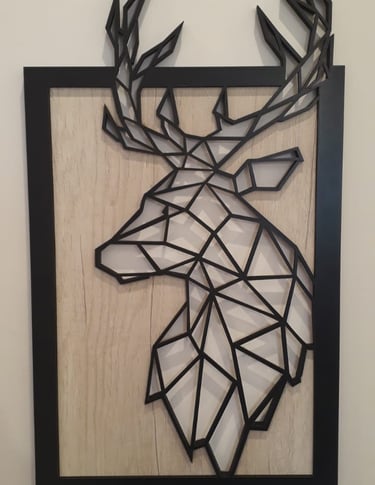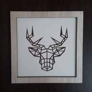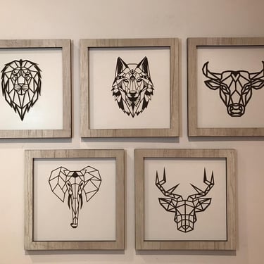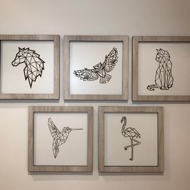 Los cuadritos están realizados en madera melaminada blanca con marco nórdico. Con animales poligonales grabados en la madera.