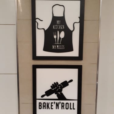 Los cuadritos están realizados en sobrerrelieve de madera melaminada sobre blanco. Ideales para decorar tu cocina con algo original.