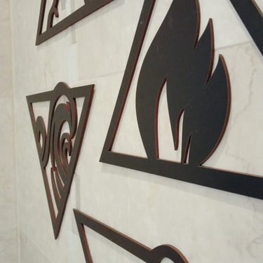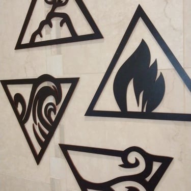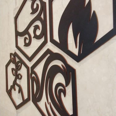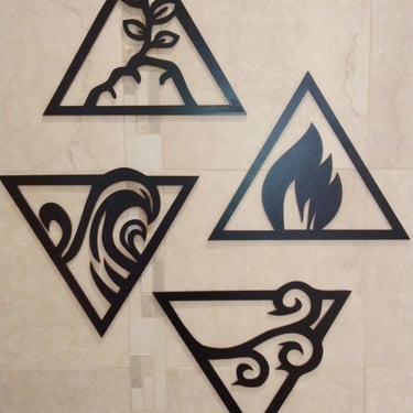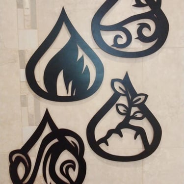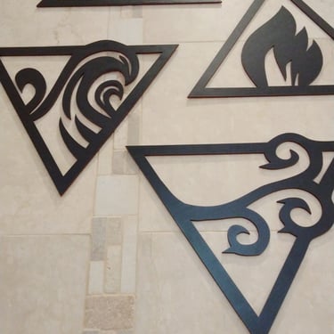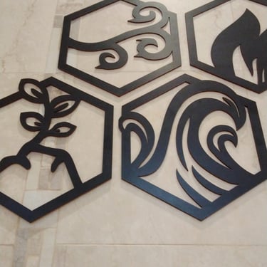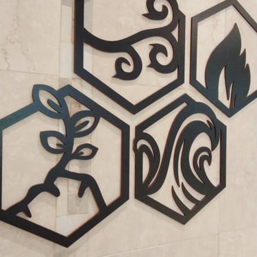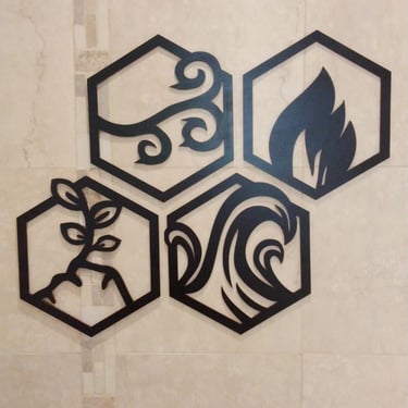 Set de 4 elementos en formas geométricas. Gota, triángulo, hexágono.