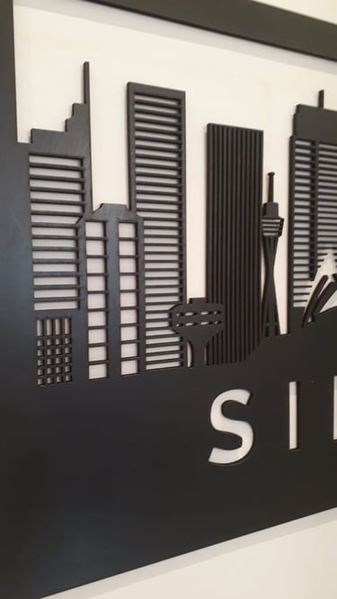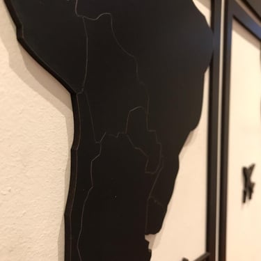 El cuadro está realizado en madera melaminada negra calada con láser.