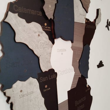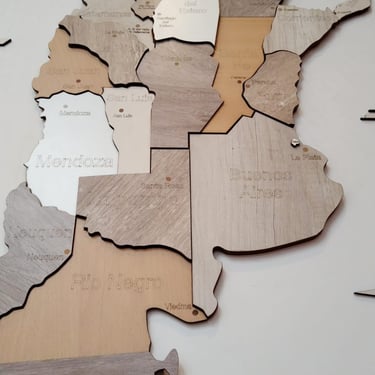 Cuenta con el nombre de cada provincia y sus capitales grabados sobre la madera. Incluye los accesorios!!