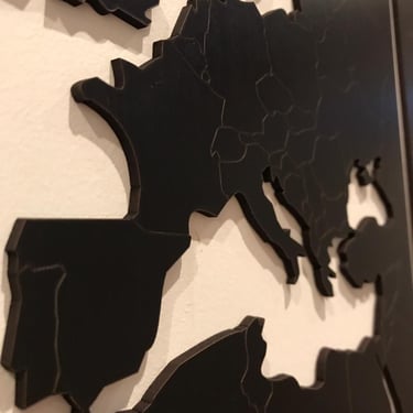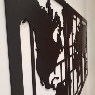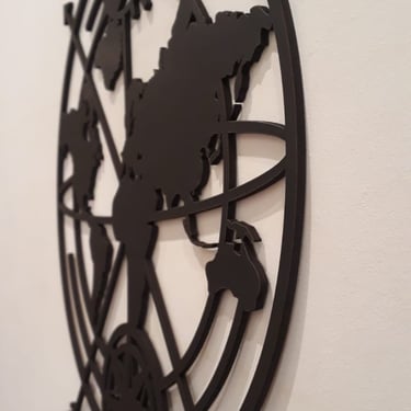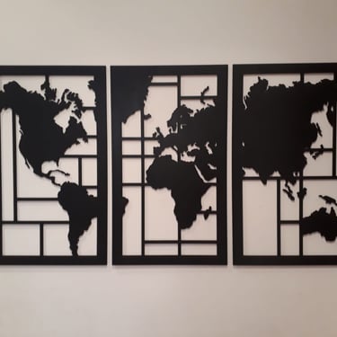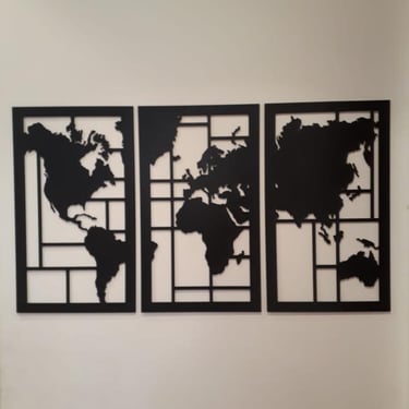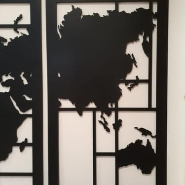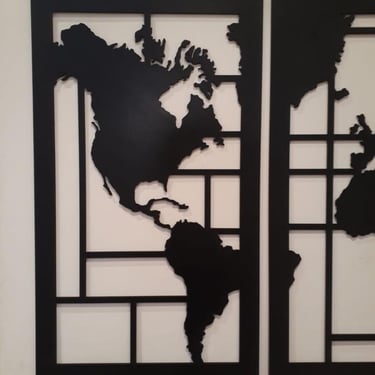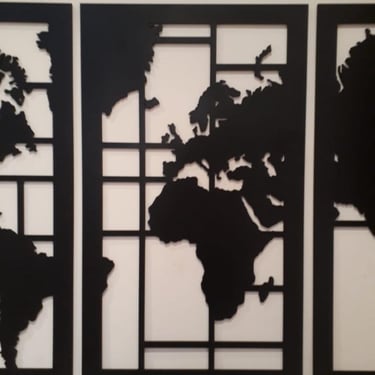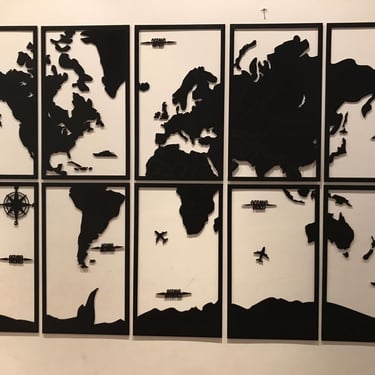 Consta de 10 cuadros que juntos forman un planisferio. Con las divisiones políticas de los países marcadas con láser. Incluye accesorios: aviones, barcos, nombres de los océanos...